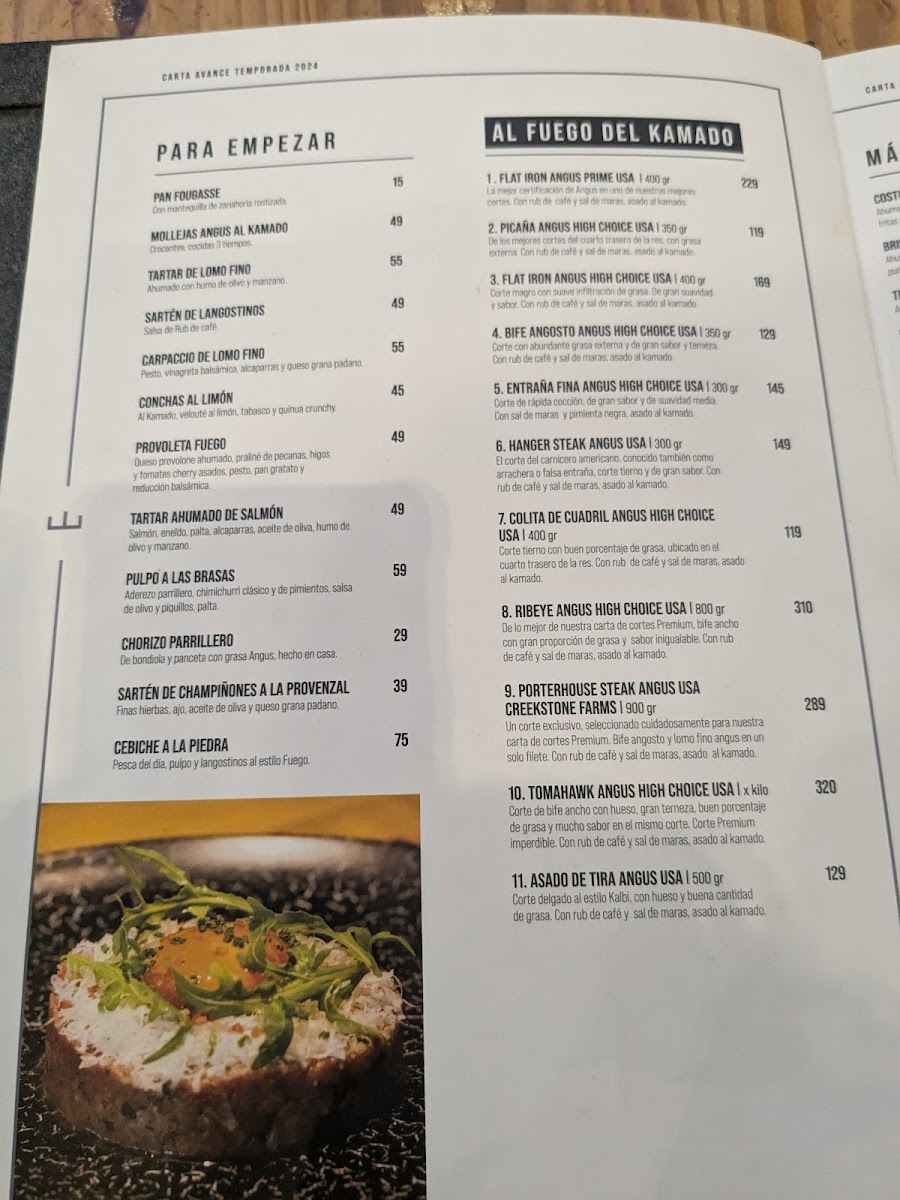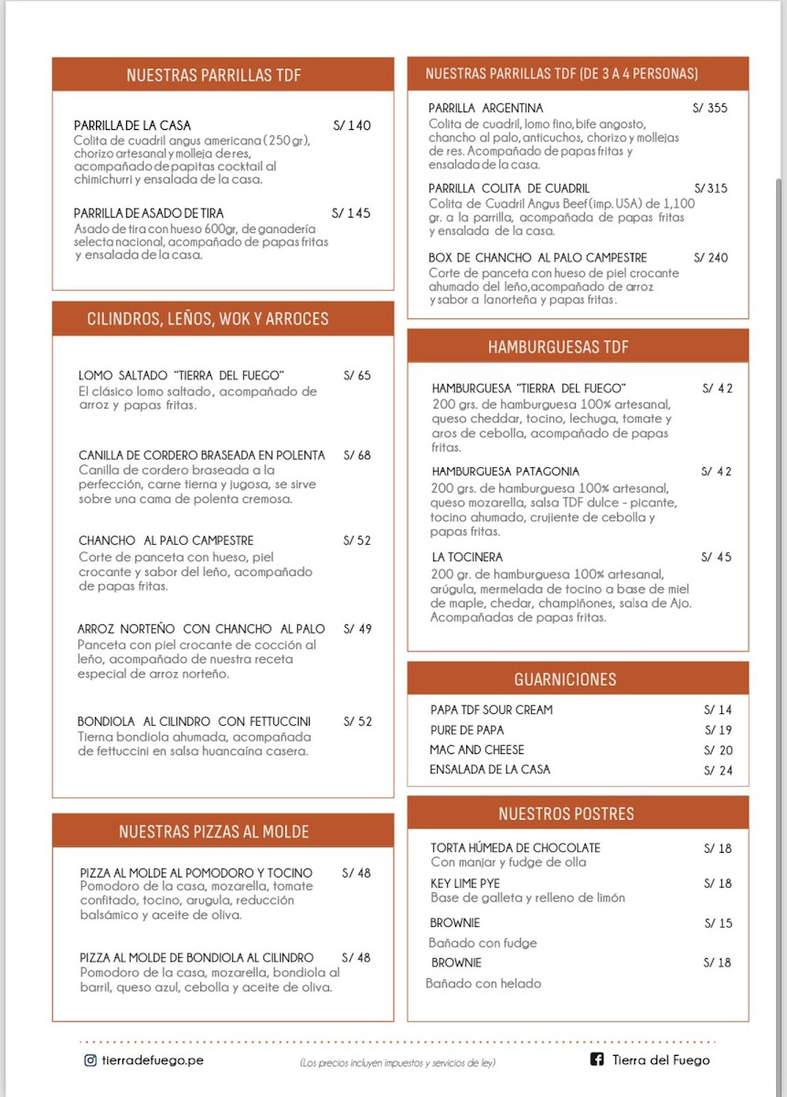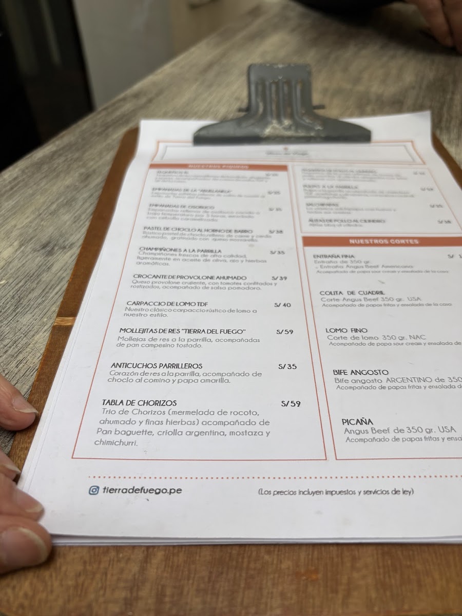 Tierra Del Fuego offers a vibrant and mouthwatering dining experience, with a menu that blends bold flavors and expertly crafted dishes. Among its standout offerings, the Tomahawk is a showstopper, delivering a tender and juicy steak that is perfect for meat lovers, while the Tartare de Lomo offers a fresh and flavorful twist on a classic dish. For those seeking refreshing cocktails, the Aperol Spritz and Maracuya Sour are standout choices, offering a balance of citrusy zest and smooth finishes. The Pulpo A la Brasa, grilled to perfection, highlights the kitchen’s mastery of seafood, while the Sangría offers a sweet, fruity refreshment that pairs wonderfully with the meal. The appetizers shine with Tequeños XL, which are crispy and savory, providing the perfect start to the meal. Finally, the Papa Asada, a beautifully roasted potato, serves as a comforting side that complements the main courses. Whether you're indulging in the rich flavors of the meat or enjoying a refreshing drink, Tierra Del Fuego's menu delivers a delightful experience that leaves a lasting impression.